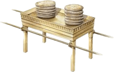 다음으로 하나님은 ‘진설병’이라 불리는 거룩한 빵을 놓아 두는 상을 만들라 하신다. 이 상도 역시 아카시아 즉 조각목으로 만들고, 순금으로 입힌 다음, 둘레에는 금테를 둘러야 한다(23-24절). 상 둘레에는 손바닥 너비 만한 턱을 만들어 붙이고, 그 턱의 둘레에도 금테를 둘러야 한다(25절). 이 상을 들러 멜 수 있도록 상다리가 붙어 있는 네 모퉁이에 금고리를 만들어 턱 곁에 달고, 그 고리에 끼워 들 수 있는 채를 아카시아 나무로 만들고 금을 입혀야 한다(26-28절).